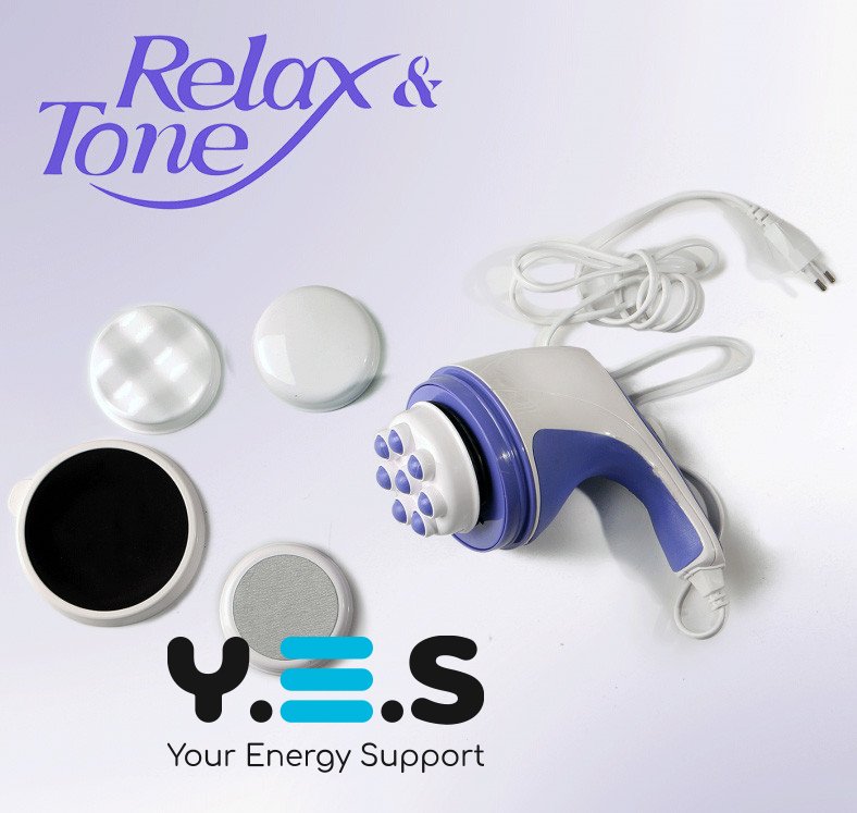 Ручний масажер Relax and Tone — антицелюлітний вібромасажер для тіла, рук та ніг з комплектом із 4 насадок. Підійде для щоденного використання вдома: допомагає виконувати комфортний вібромасаж різних зон, підтримуючи тонус і розслаблення м’язів. Якісний та надійний прилад для регулярного догляду за тілом.