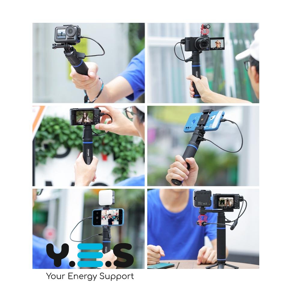 KingMa Power Handle Grip KM-GP01 – це штатив, селфі-палка та повербанк на 10000 мАг – 3 в 1. Підходити для відеоблогів, прямих трансляцій на YouTube, відкладеної зйомки та інших видів зйомки, які споживають електроенергію.