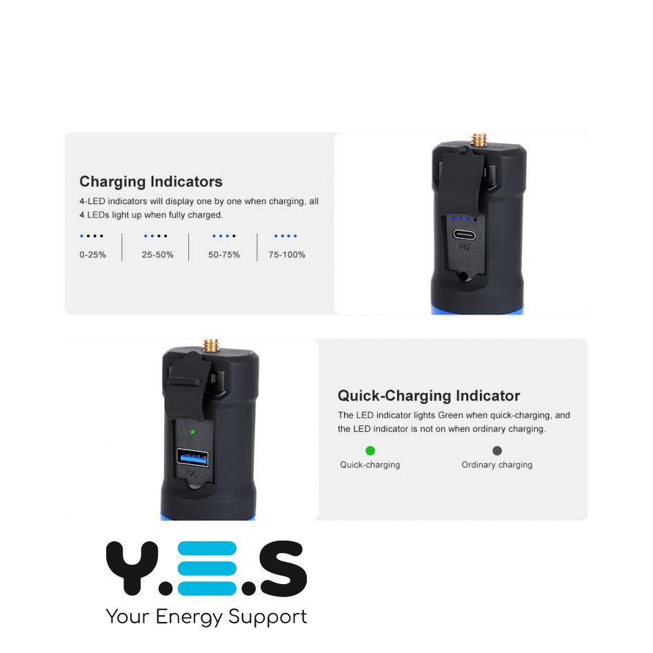 - Висока ємність: Power Handle Grip має аккумулятор ємністю 10000 мАг. Він може забезпечити надзвичайно тривалий термін служби аккумулятора для мобільних телефонів, камер, освітлювального обладнання тощо.