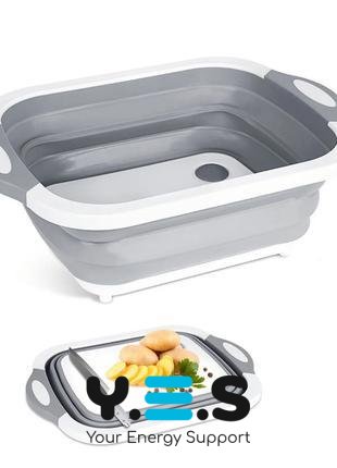 Складана господарська миска‑кошик 2в1 з обробною дошкою, кухонний трансформер