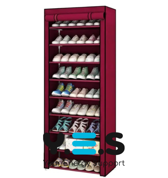 Складна шафа для взуття, 9 полиць — практичний тканинний стелаж-органайзер для зручного зберігання взуття вдома. Допомагає підтримувати порядок у передпокої, гардеробній або кімнаті. Легка складна конструкція зручна для щоденного використання та швидкого переміщення.