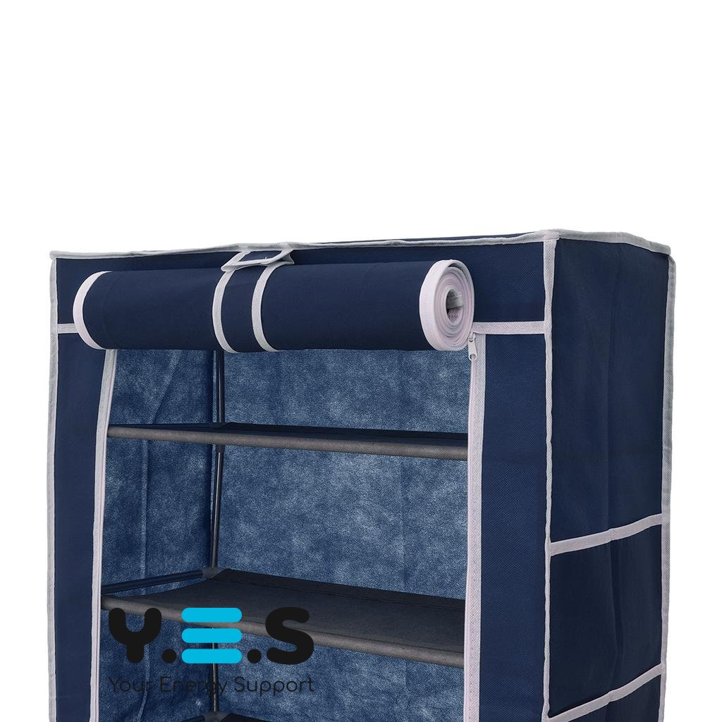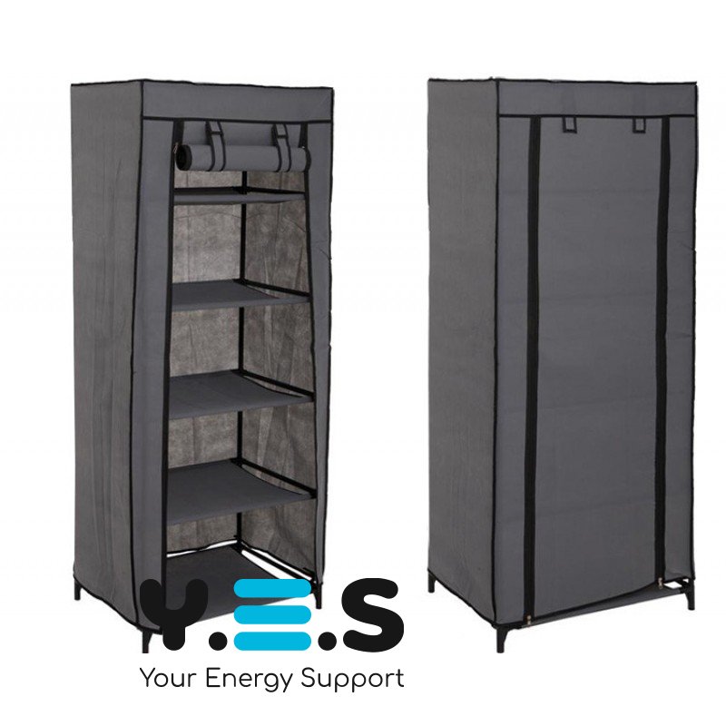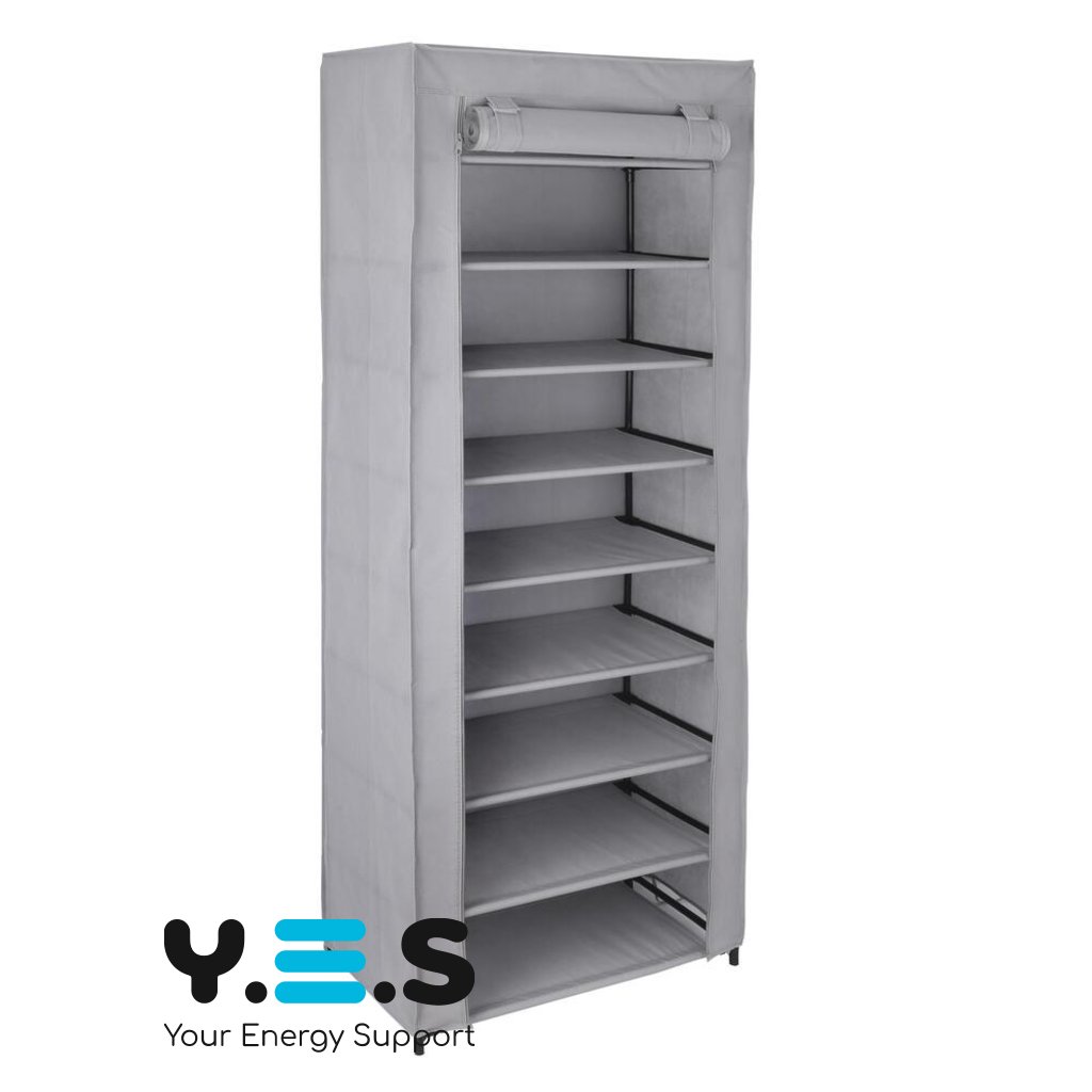 Шафа виконана як тканинний стелаж, розрахований на 9 полиць, що дозволяє компактно розмістити кілька пар взуття. Це якісний і надійний варіант для регулярного користування, коли потрібне просте та акуратне рішення для зберігання.