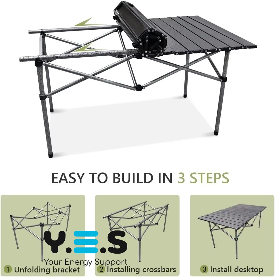 Складний портативний стіл для кемпінгу з алюмінієвою стільницею, чохол, 94×57×50 см