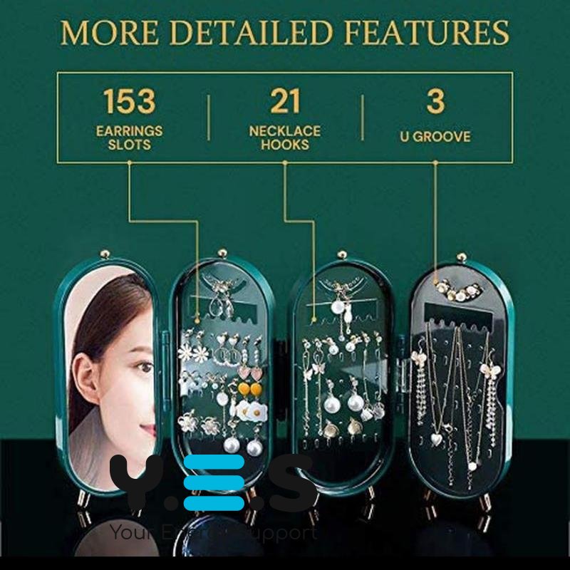 Складна скринька-органайзер для зберігання ювелірних прикрас і біжутерії з дзеркалом у вінтажному стилі — зручне рішення для щоденного використання вдома або в подорожах. Допомагає акуратно розкласти прикраси та швидко знаходити потрібні аксесуари.