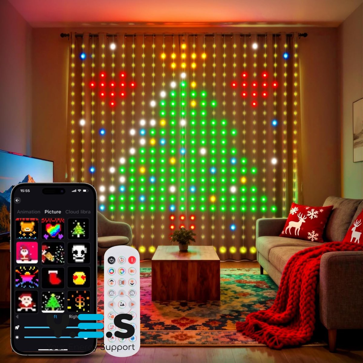Гірлянда Smart-штора SFK-07 — святкова LED-гірлянда у форматі світлодіодної штори для декору дому. Підходить для щоденного використання: якісне виконання, надійна робота та зручне керування через додаток.