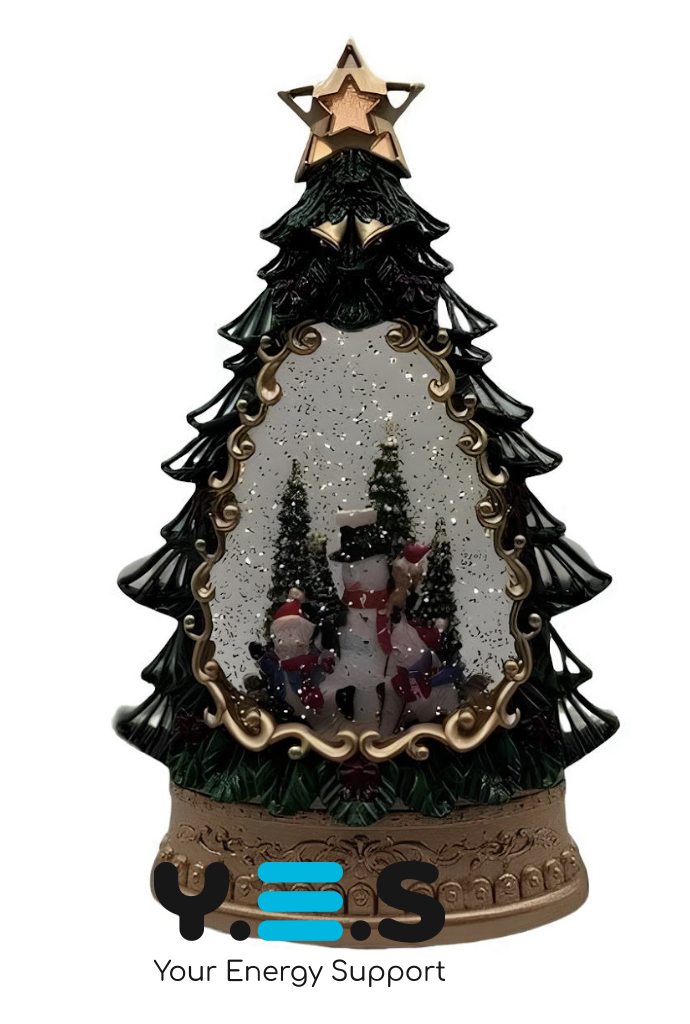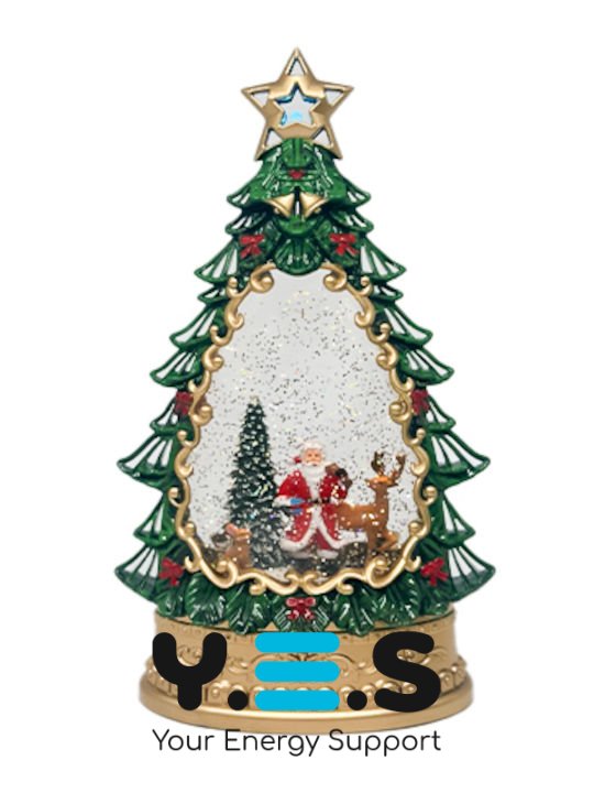Сніжна ялинка SH1616 з Дідом Морозом і подарунками, LED підсвітка, автопіддув