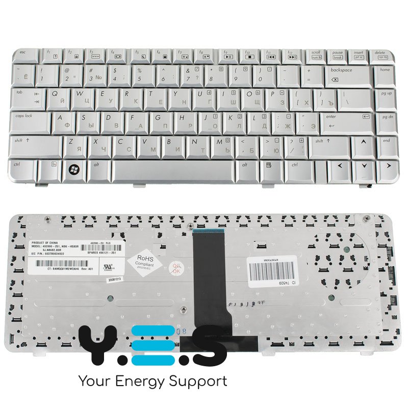 Срібляста клавіатура для ноутбука HP Pavilion dv3000, dv3500, dv3600, dv3700 — RU розкладка