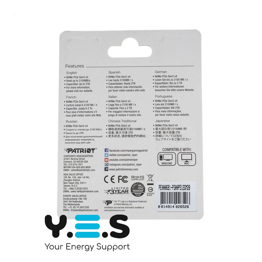 SSD Patriot P300 Series 512GB (P300P512GM28) — якісний і надійний твердотільний накопичувач формату M.2 2280 для щоденного використання. Підключення через NVMe та PCI Express 3.0 x4 забезпечує високу швидкодію системи, швидке завантаження ОС і програм, а 3D NAND TLC — стабільну роботу та ефективне зберігання даних.