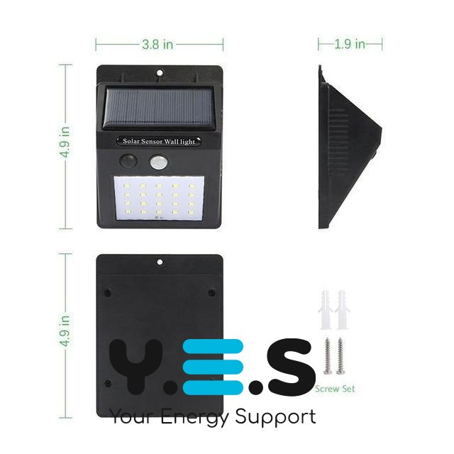 Світильник 20 Solar LED Solar Motion Sensor Light — практичний вуличний світильник на сонячних батареях із датчиком руху. Підійде для щоденного використання біля входу, у дворі, на терасі або біля гаража. Це якісний і надійний варіант для автоматичного освітлення без підключення до електромережі.