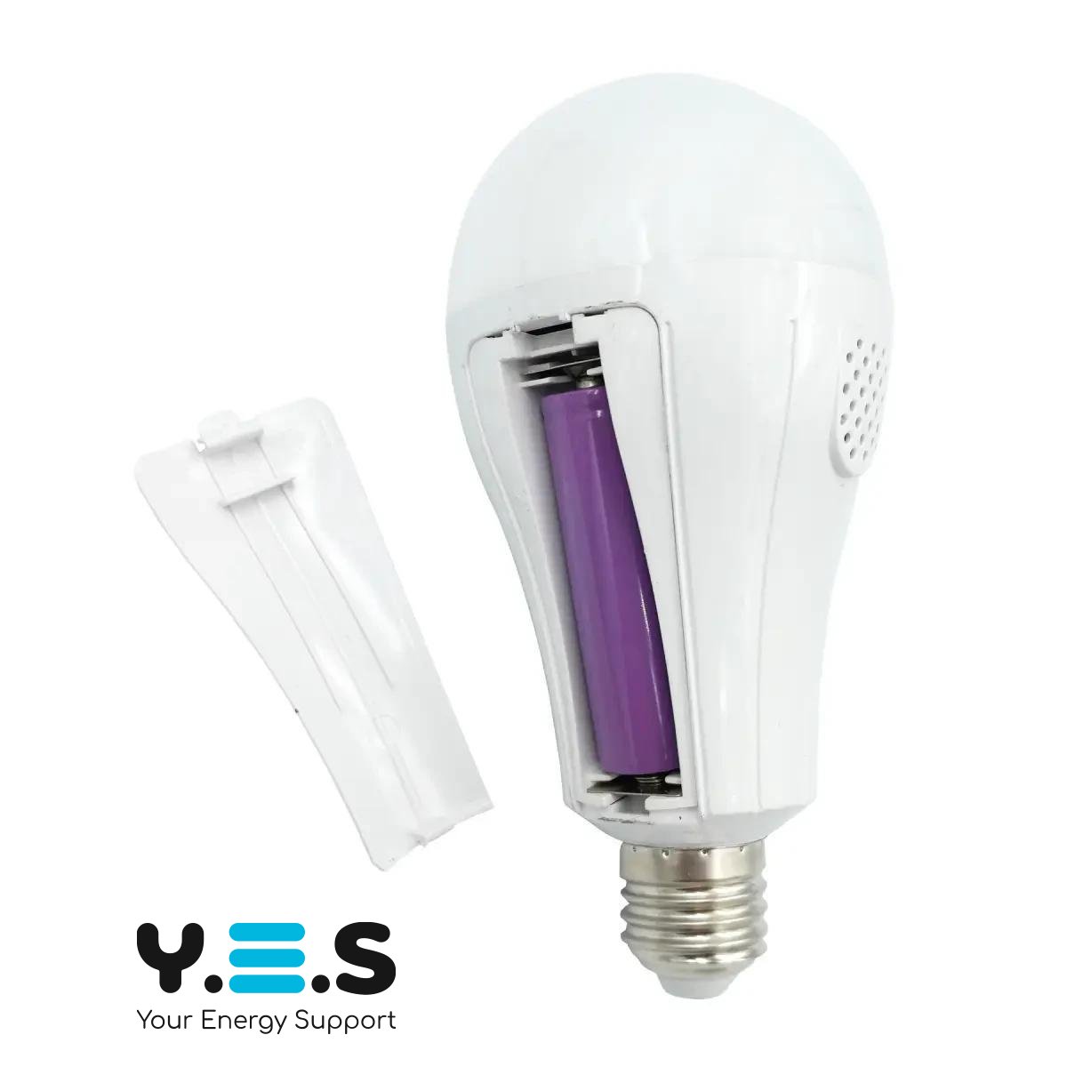 Світлодіодна аварійна лампа E27 15W з акумулятором, перезаряджається (2×18650)