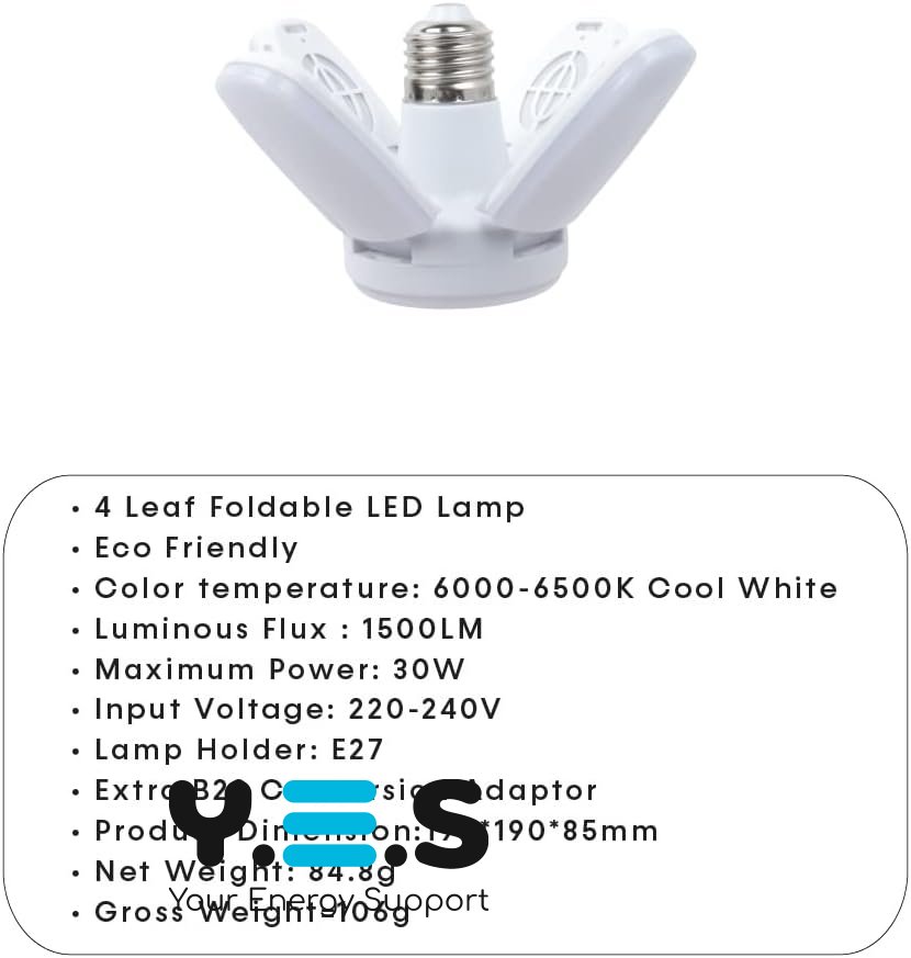 Лампочка складна світлодіодна 4 лопаті E27 KK-202 (Mini Fan Blade Bulb) 60W — практична LED-лампа з розкладними “лопатями”, яка забезпечує яскраве освітлення та зручна для щоденного використання. Відзначається якісним виконанням і надійністю, підходить для встановлення у стандартний патрон E27.