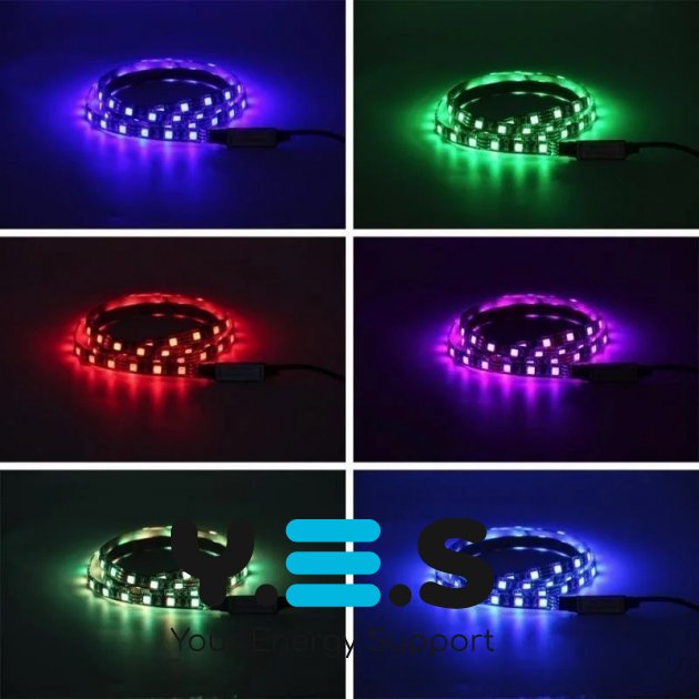 Світлодіодна стрічка LED підсвітка універсальна для телевізора та монітора — практичний набір для створення комфортного фонового підсвічування. Багатокольорова RGB підсвітка допомагає змінювати атмосферу під час перегляду фільмів, ігор або роботи за комп’ютером. Комплект довжиною 5 м постачається з пультом для зручного керування.