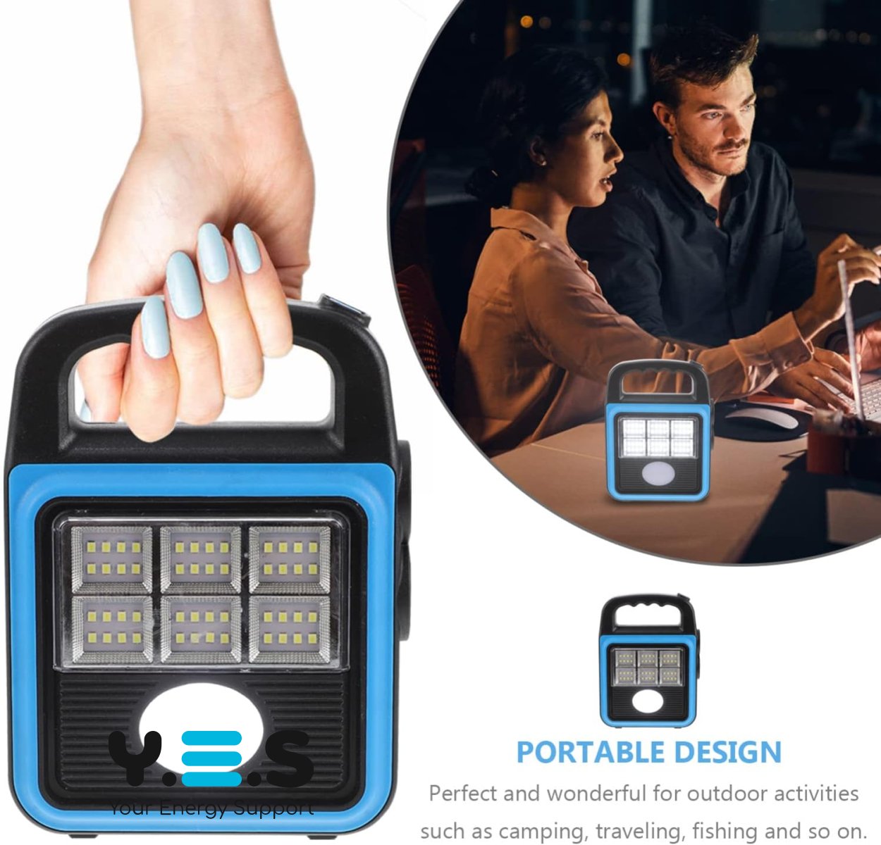 Зручний у використанні в дорозі та вдома: заряджається від сонця або через USB, а за потреби може слугувати резервним джерелом енергії для телефону чи інших пристроїв.