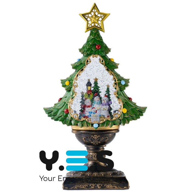 Святковий LED-світильник ялинка XHF-8002 з ефектом падаючого снігу та музикою