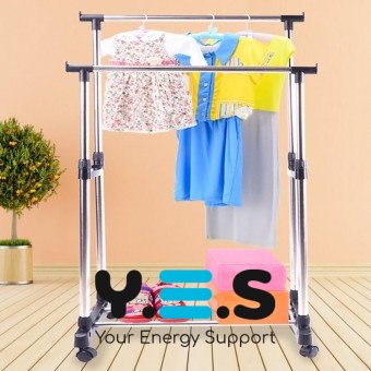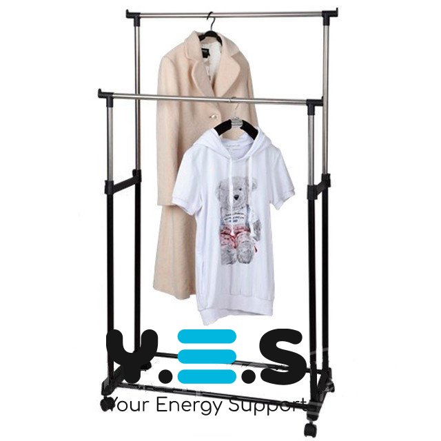 Телескопічна подвійна стійка-вішалка Double Pole Clothes Horse — зручне рішення для організації одягу та взуття вдома, у гардеробній або в магазині. Подвійна конструкція з телескопічним регулюванням дозволяє раціонально використовувати простір, а нижня зона підходить для розміщення взуття. Вішалка розрахована на щоденне використання та забезпечує надійне зберігання речей.