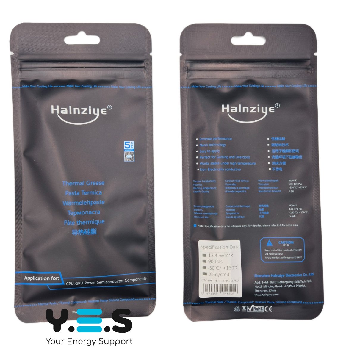 Термопаста Halnziye HY-P13 карбонова сіра, шприц 1 г, теплопровідність 13,4 Вт/м·К