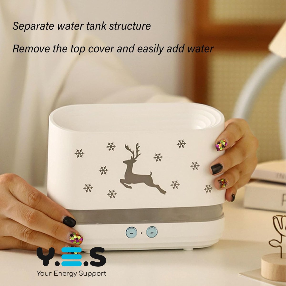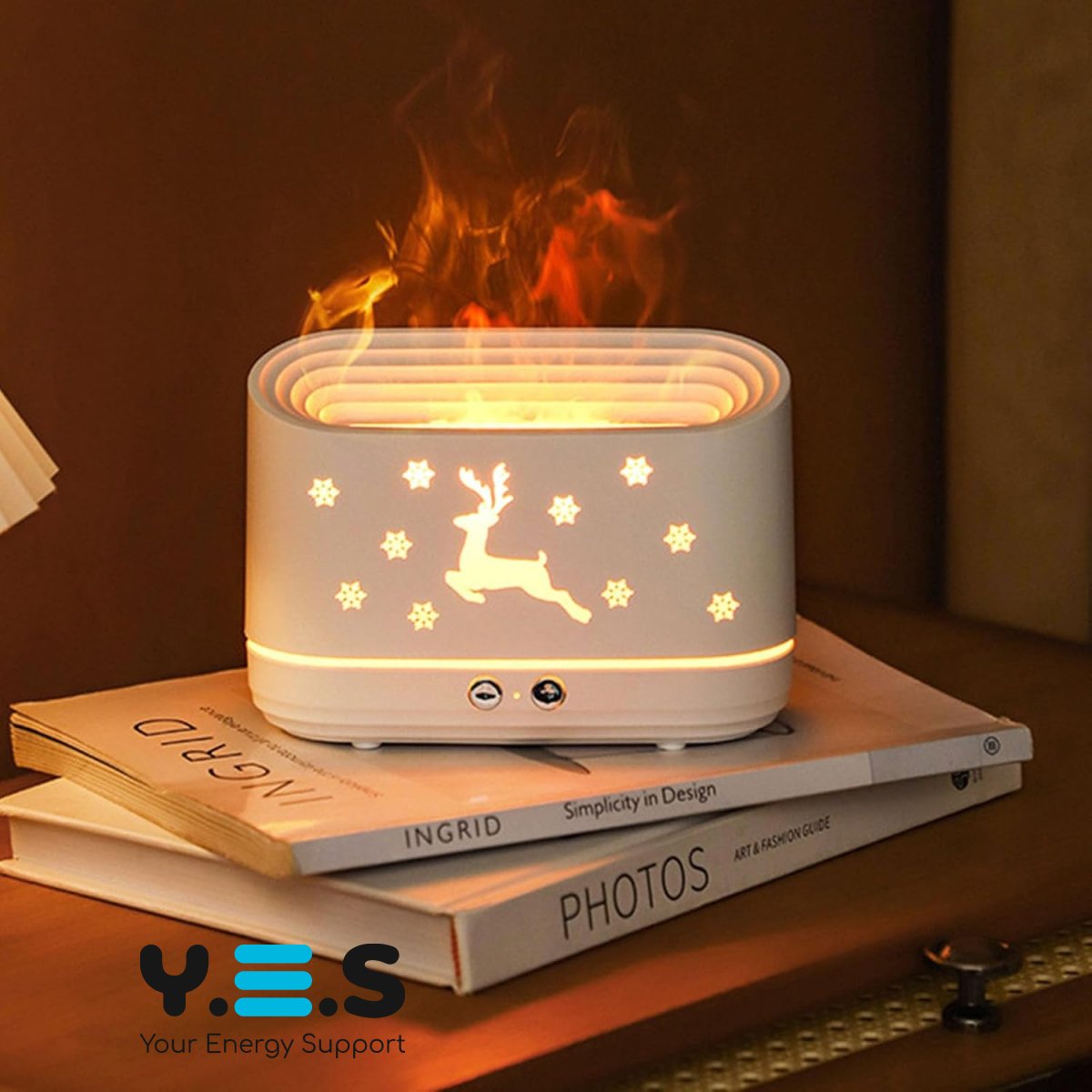 Зволожувач повітря EL-JS1 — ультразвуковий зволожувач з підсвічуванням та ефектом полум’я (імітація вогню), який допомагає підтримувати комфортний мікроклімат у кімнаті та створює затишну атмосферу.