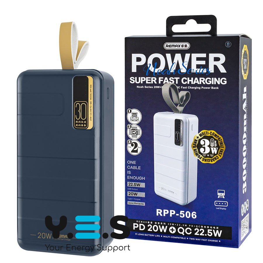 Универсальная мобильная батарея Remax RPP-506 Noah Series 20W+22.5W PD+QC Fast Charging, 30000mAh, Blue