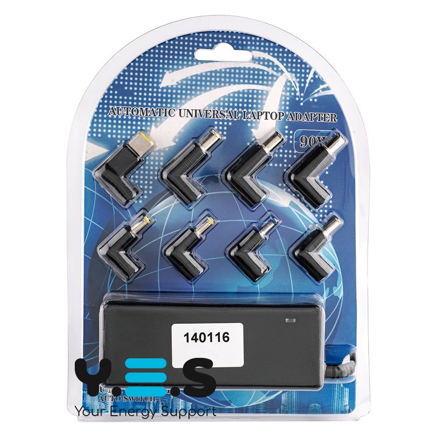 Універсальний блок живлення OEM потужністю 90W з підтримкою напряження від 15V до 20V. В комплекті — 14 змінних штекерів, що дозволяє використовувати адаптер із більшістю ноутбуків різних брендів: HP, Dell, Lenovo, Asus, Acer, Toshiba, Samsung, Sony тощо. Колір корпусу — чорний.