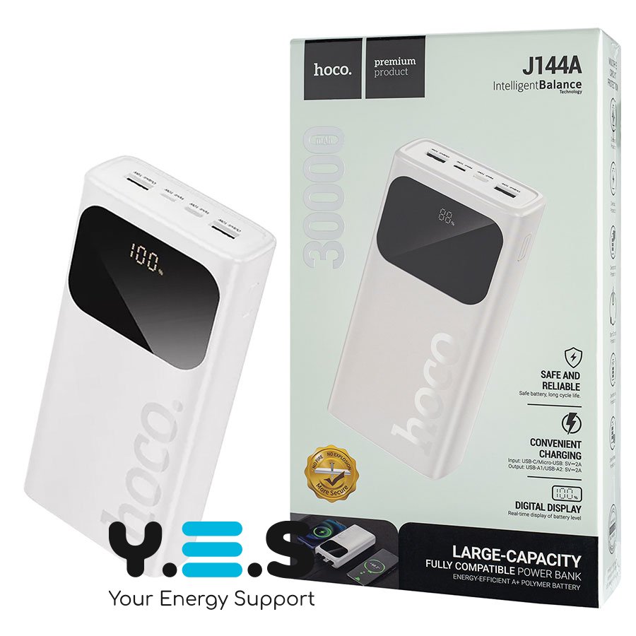Універсальна мобільна батарея HOCO J144A Hymn 30000mAh (white) — місткий павербанк для щоденного використання. Якісний та надійний аксесуар, який допоможе підтримувати заряд ваших пристроїв у дорозі, на роботі чи під час подорожей.