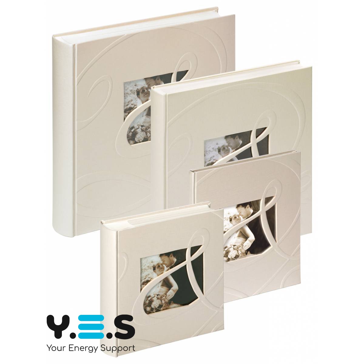 Весільний альбом Walther 34*33 Ti amo 50 pages UH-222 Весільний альбом у книжковій палітурці з високоякісною лляною обкладинкою та тисненням. Альбом прикрашений вирізом на лицьовій стороні для вставки особистої фотографії. Альбом формату 34х33 см має 100 білих сторінок з безкислотного фотокартону із захисними листами з білого пергаменту, 2-х сторінкову ілюстровану обкладинку та забезпечений компакт-диском та архівом негативів. Фотографії в цей альбом необхідно кріпити за допомогою фотоскотча. Можна розмістити фото в різному положенні і якщо розмір дозволяє – можна поєднувати фото кількох форматів на одній сторінці. Між паперовими сторінками фотоальбому є вставка з тонкого пергаменту - для того, щоб фотографії не терлися одна об одну. Матеріал виготовлення обкладинки – тканина. Можна вставити фото в рамку на обкладинці. Розмір обкладинки (Ш/В) – 340х330 мм.