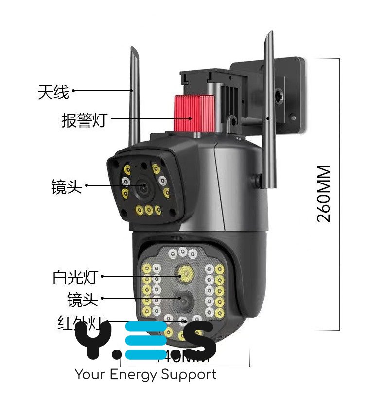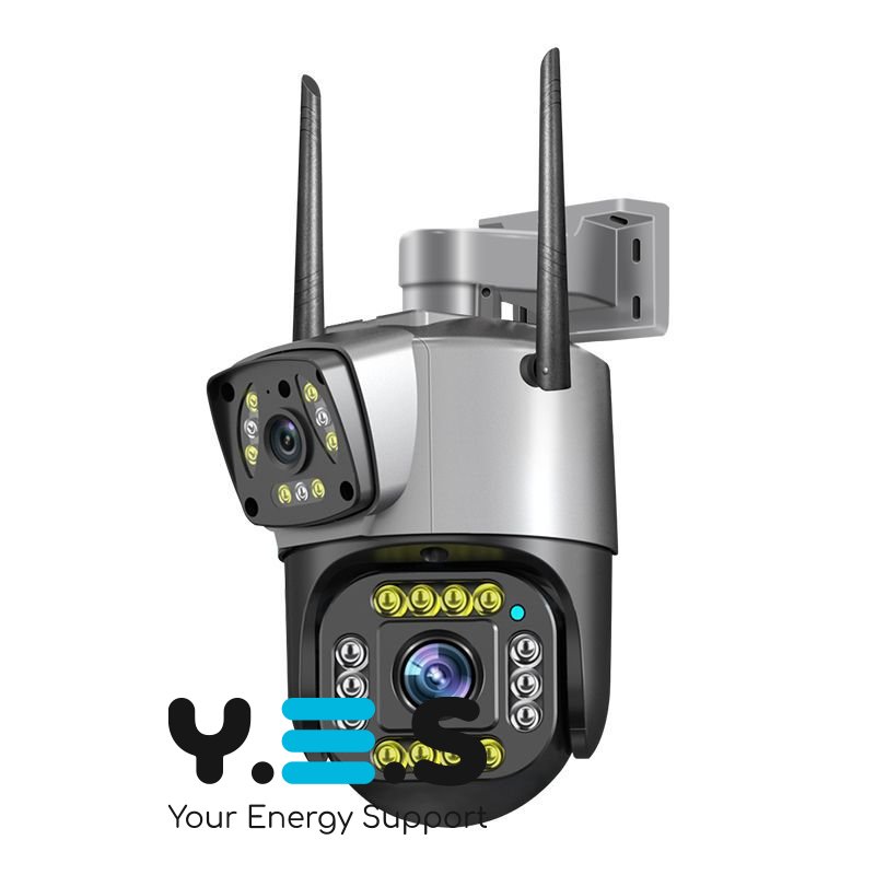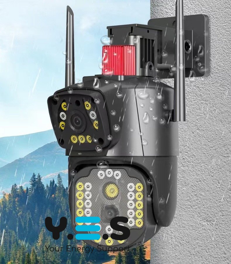 Бездротова зовнішня IP камера V380 WI FI — подвійна вулична камера відеоспостереження з двома об’єктивами 4MP + 4MP та віддаленим доступом. Практичне рішення для щоденного контролю території біля будинку, двору, складу або офісу. Камера розрахована на регулярне використання та забезпечує надійне спостереження.