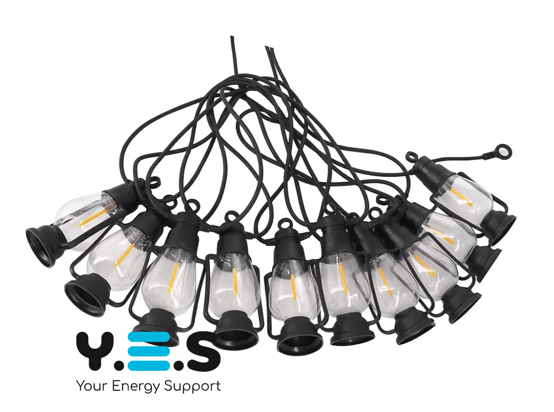 Гірлянда підвісні ретро-лампи 220 В, тепле світло, вулична SFK-49 — LED-гірлянда з великими лампами у ретро-стилі для декоративного освітлення на вулиці. Підійде для тераси, двору, альтанки, фасаду, кафе або святкового оформлення.