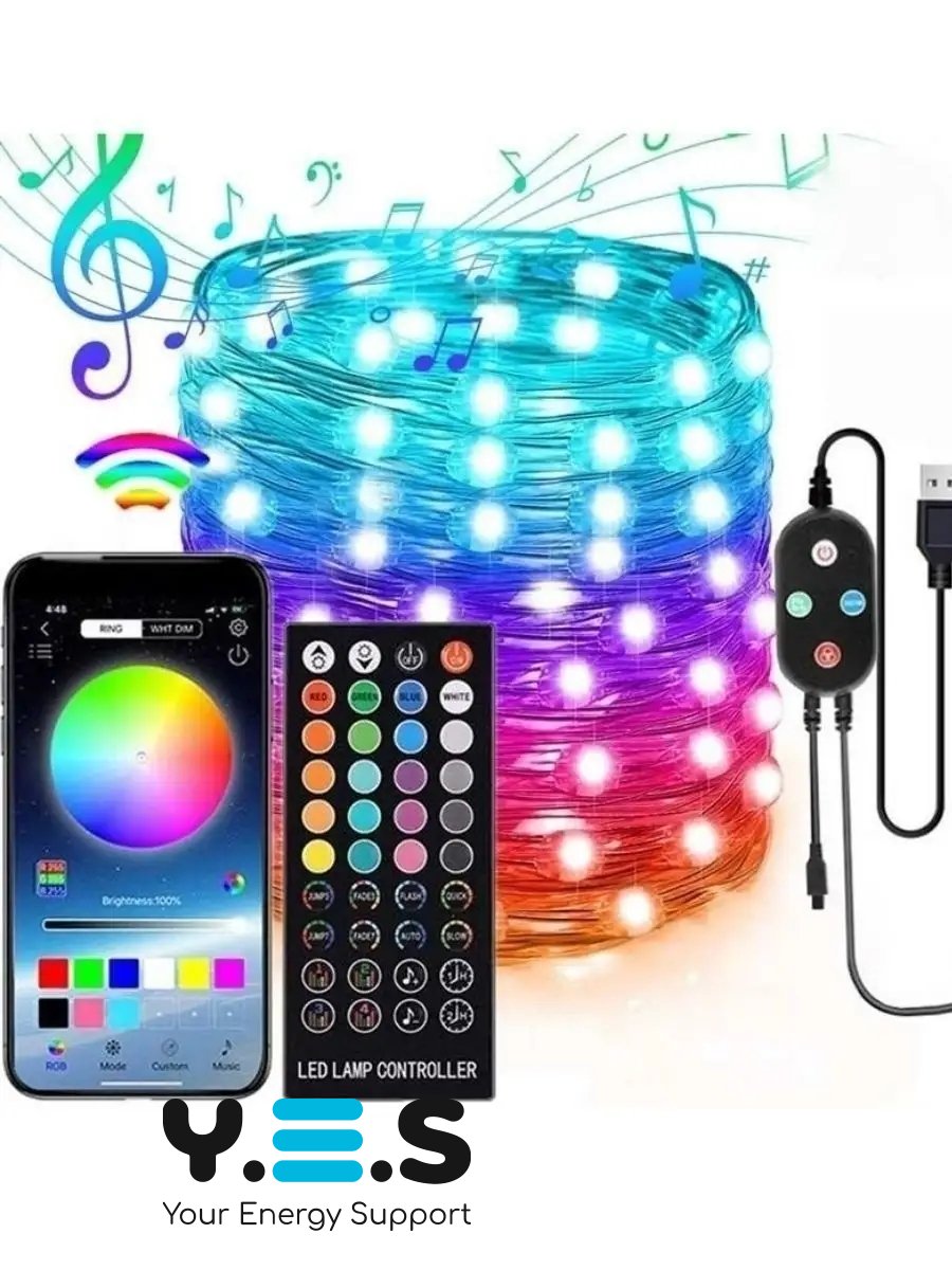 Вуличні вогні 5M Smart Bluetooth App Control — світлодіодна LED гірлянда довжиною 5 м з керуванням через мобільний додаток по Bluetooth. Практичне рішення для щоденного використання: якісна, надійна та зручна в налаштуванні, підходить для створення атмосфери на вулиці.