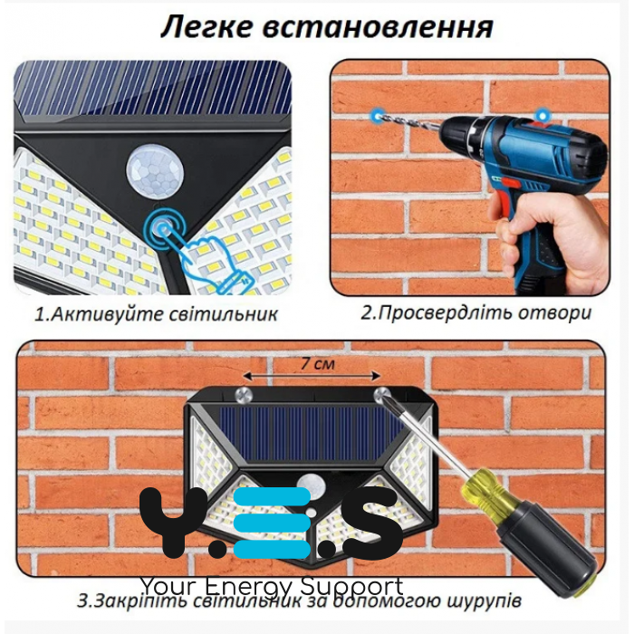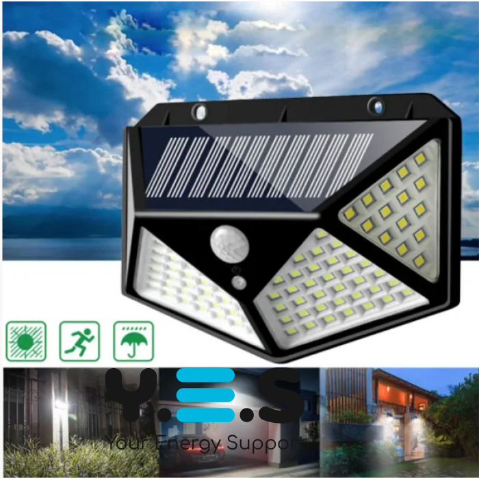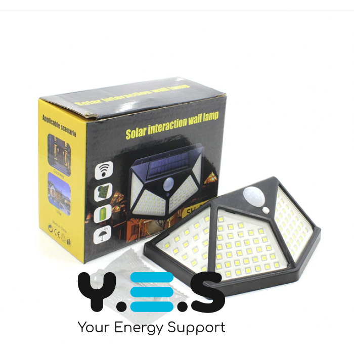 Вуличний настінний світильник Lesko SH-100 на сонячній батареї з датчиком руху, 100 LED