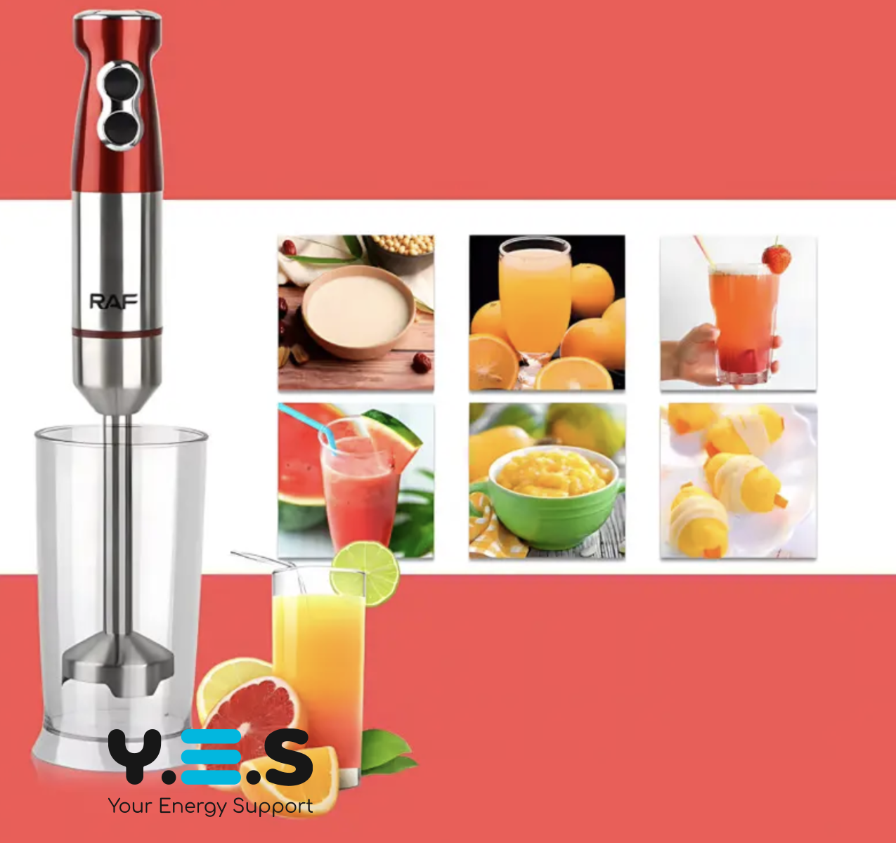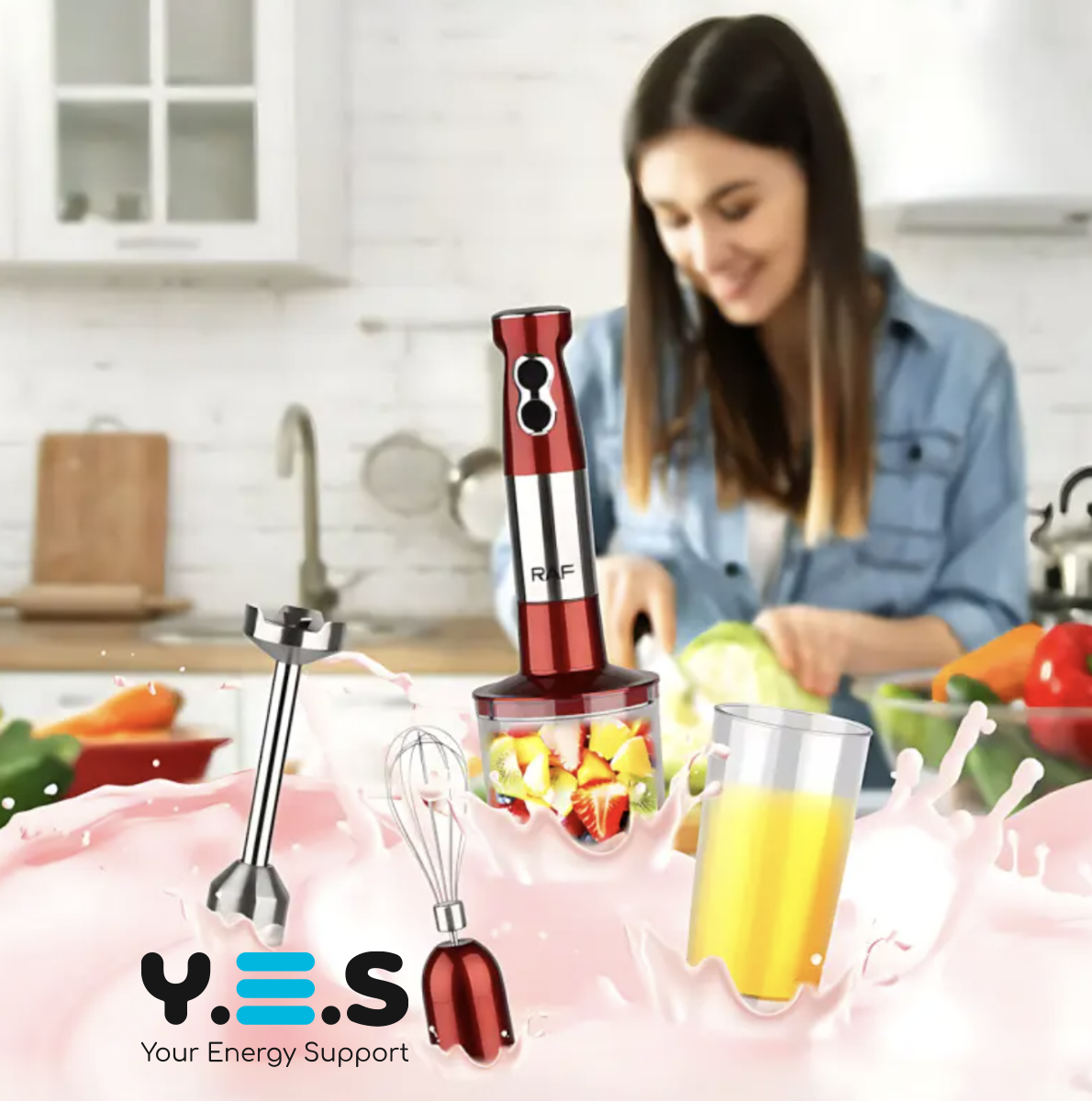 Занурювальний блендер RAF R-296 4-в-1, 1000 Вт, для дому та кухні