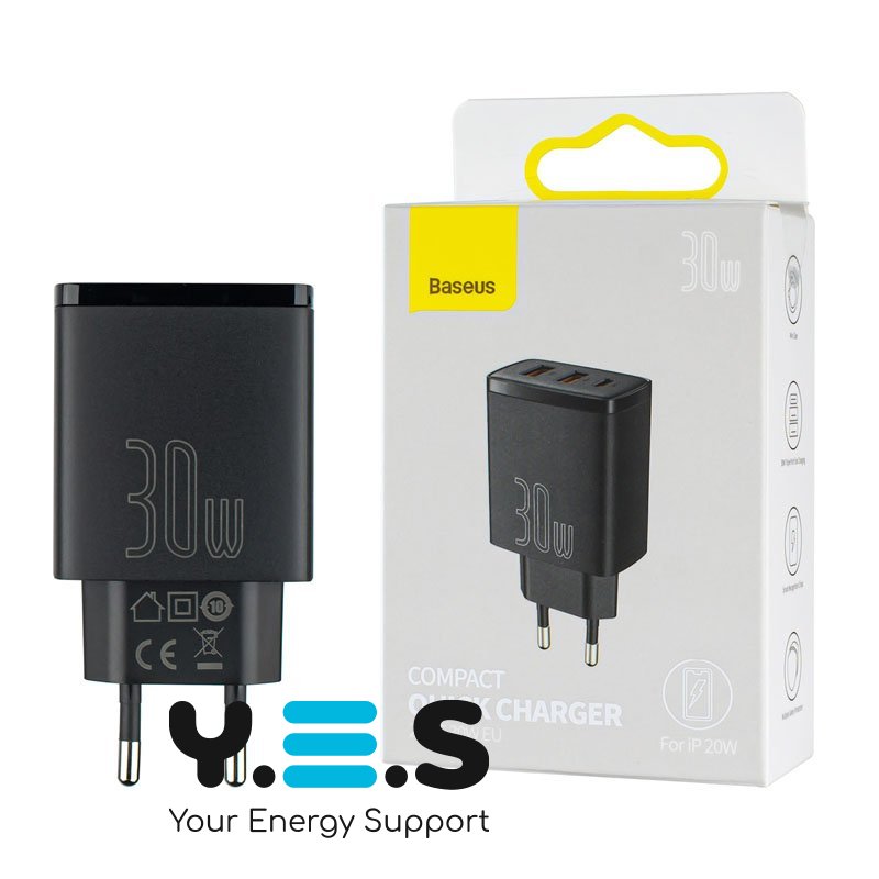 - Зарядное устройство Baseus Compact Quick Charger 2U+C 30W EU Black (CCXJ-E01)