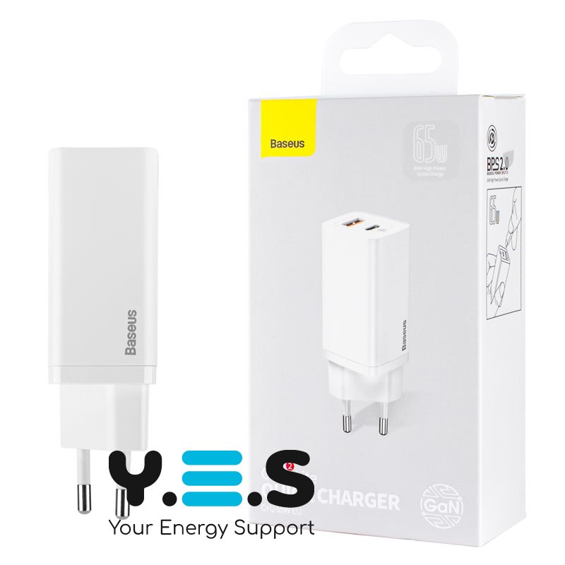 Зарядний пристрій Baseus GaN2 Lite Quick Charger C+U 65W EU Білий (CCGAN2L-B02)