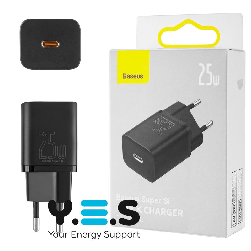 Зарядний пристрій Baseus Super Si 25W USB‑C Quick Charger EU, чорний (CCSP020101)