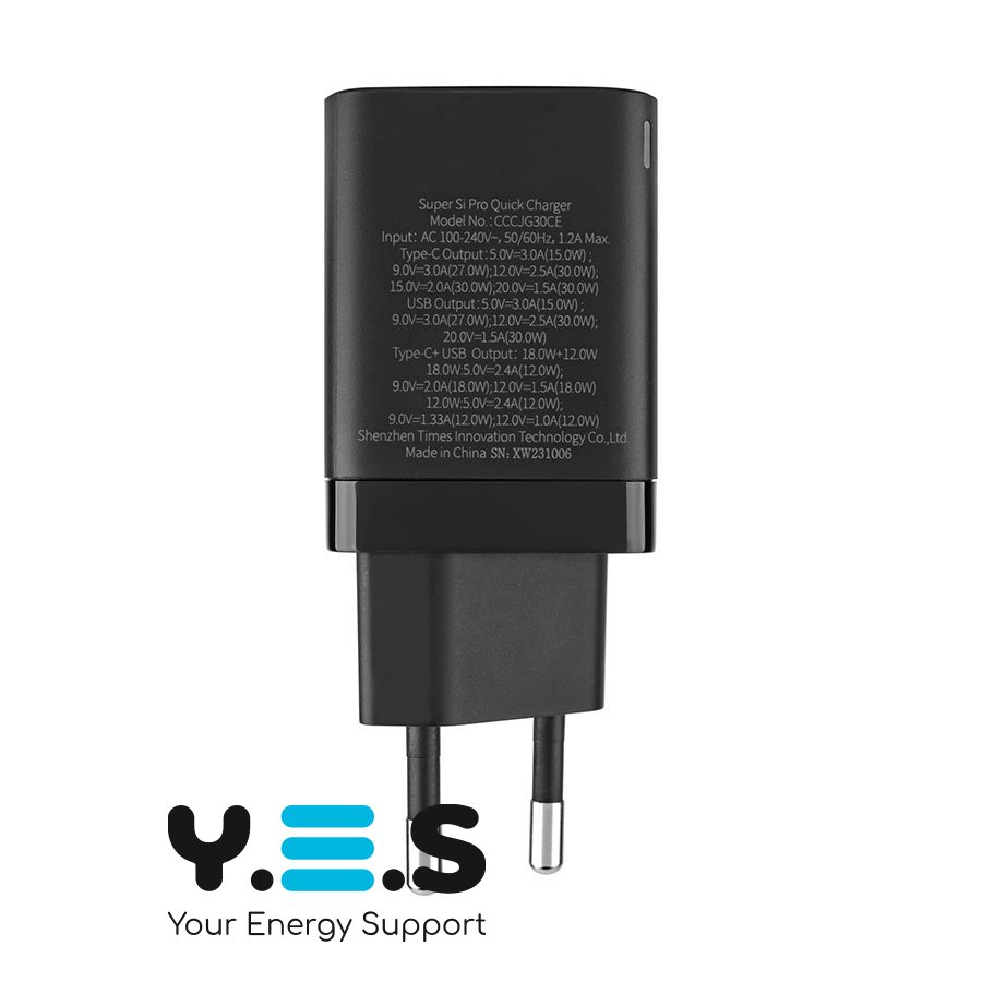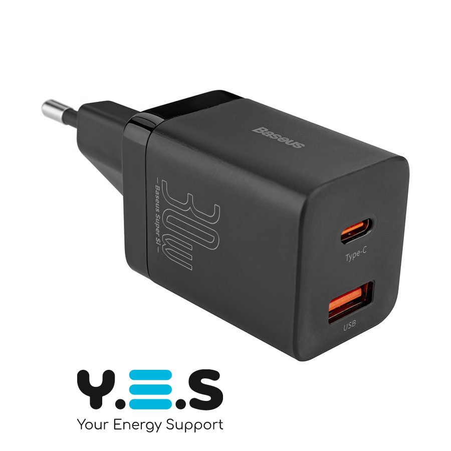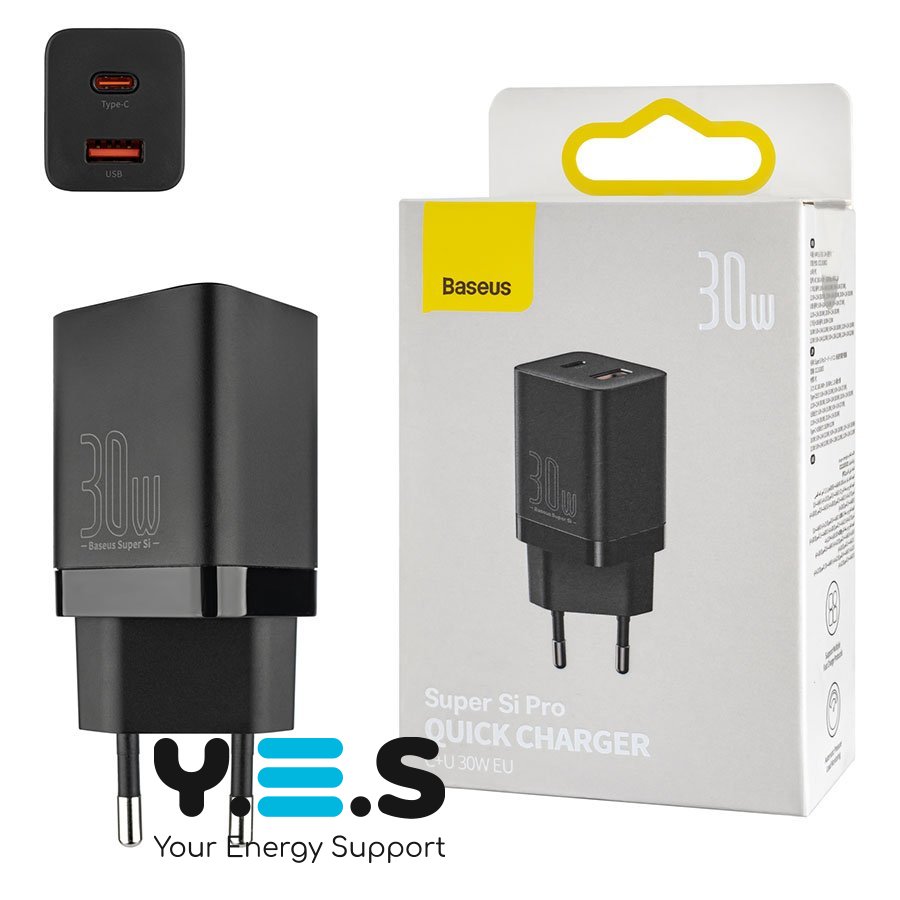 Зарядний пристрій Baseus Super Si Pro Quick Charger C+U 30W EU чорний CCSUPP-E01