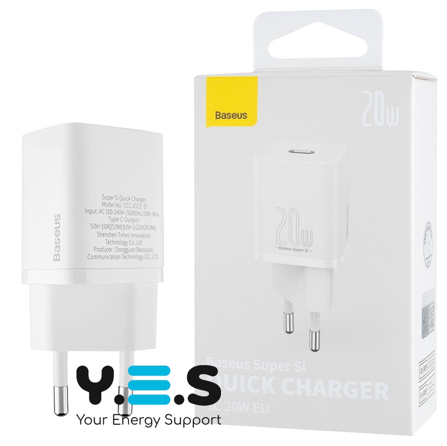 - Зарядний пристрій Baseus Super Si quick charger 1C 20W EU білий CCSUP-B02