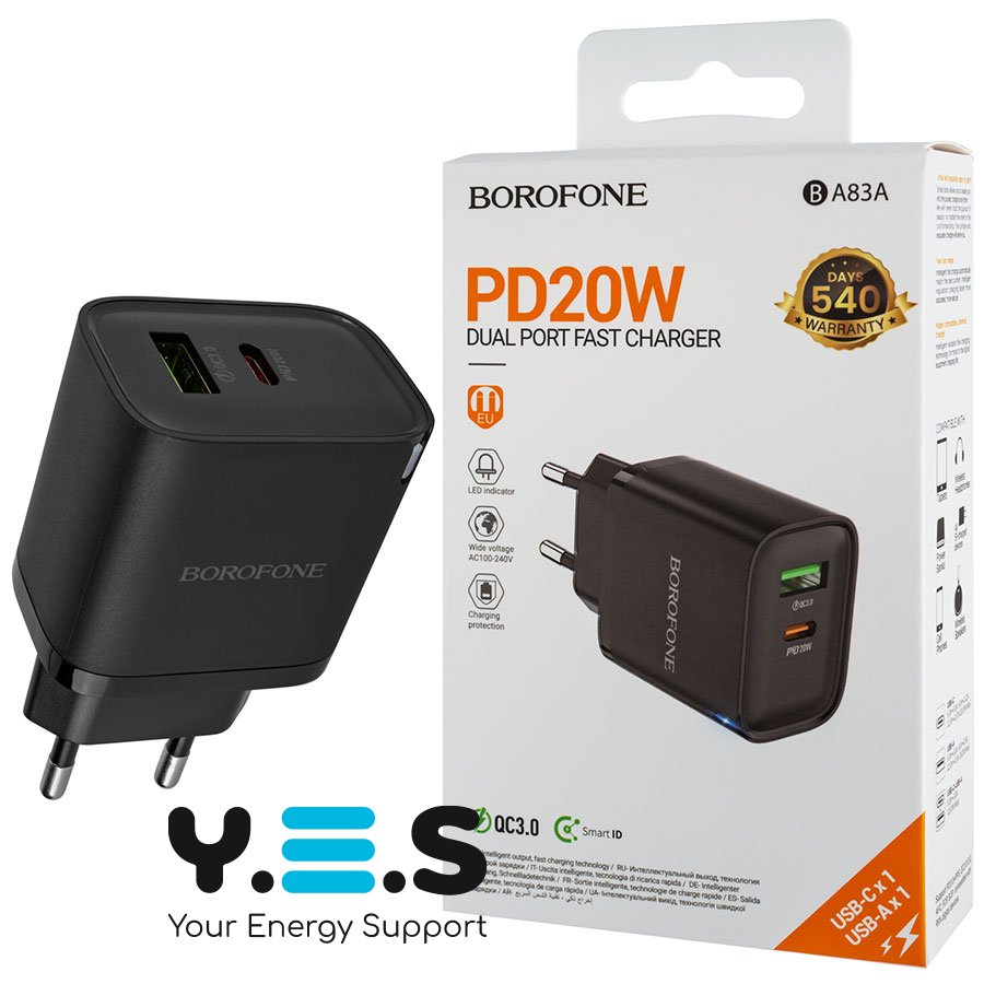 Зарядний пристрій BOROFONE BA83A Flare Star PD 20W + QC3.0, чорний