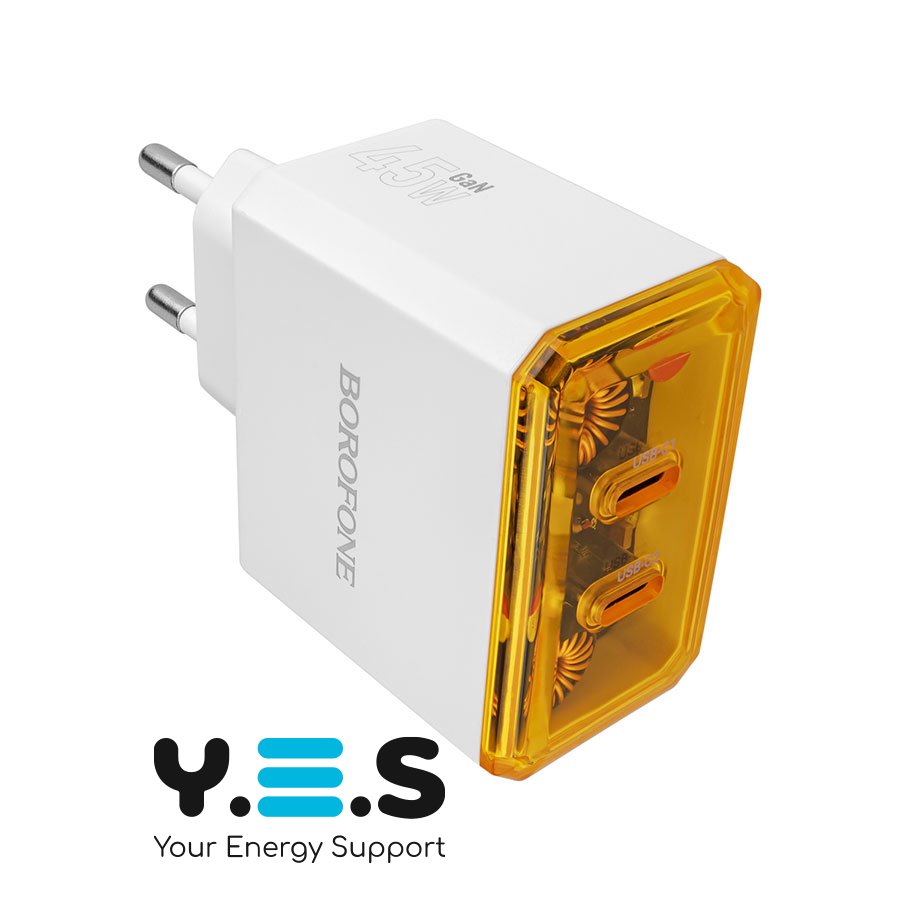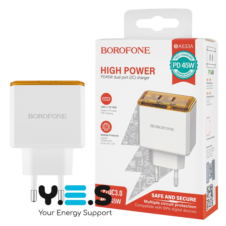 Зарядний пристрій BOROFONE BAS33A 2×USB-C PD/QC 45W, білий (6941991110719)