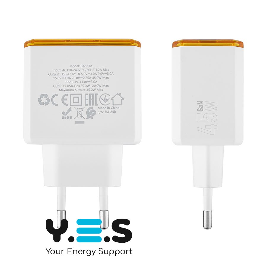 Зарядний пристрій BOROFONE BAS33A — якісний та надійний мережевий адаптер для щоденного використання вдома, в офісі або в подорожах. Оснащений двома портами USB‑C та підтримує сучасні протоколи швидкої зарядки для сумісних пристроїв.