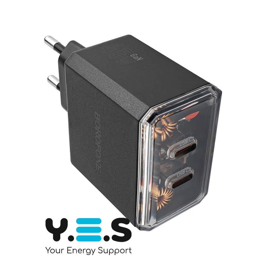 Переваги Зарядний пристрій BOROFONE BAS33A 2USB-C PD/QC45W black 6941991110702