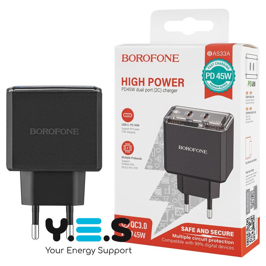 Зарядний пристрій BOROFONE BAS33A 2USB-C PD/QC45W black 6941991110702
