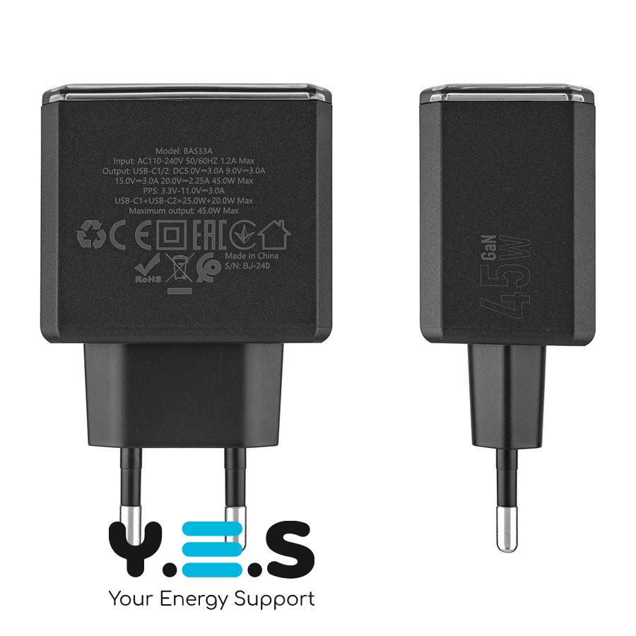 - Висока вихідна потужність (до 45W) для швидкого поповнення заряду сучасних смартфонів