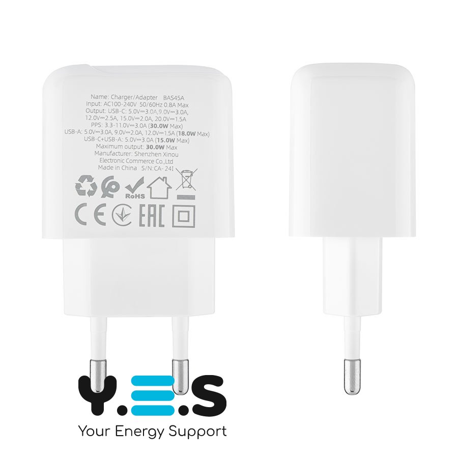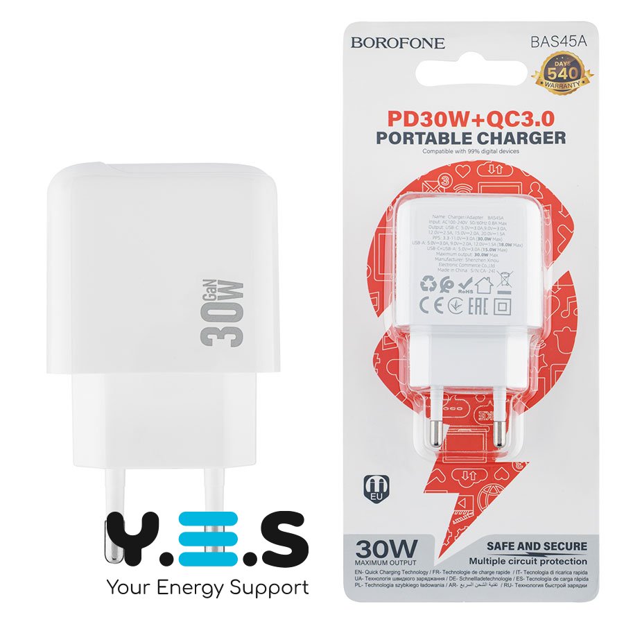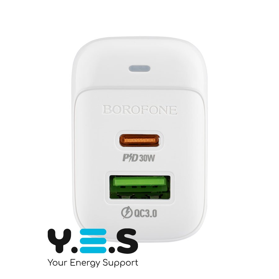 Зарядний пристрій BOROFONE BAS45A — якісний та надійний мережевий адаптер для щоденного використання вдома, в офісі або в дорозі. Підтримує швидку зарядку PD та QC і дозволяє заряджати два пристрої одночасно завдяки портам USB-C та USB.