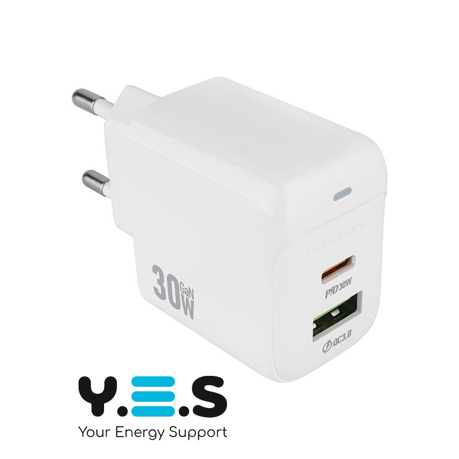 Зарядний пристрій BOROFONE BAS45A 30W, USB‑C+USB, PD/QC, білий (6941991113871)