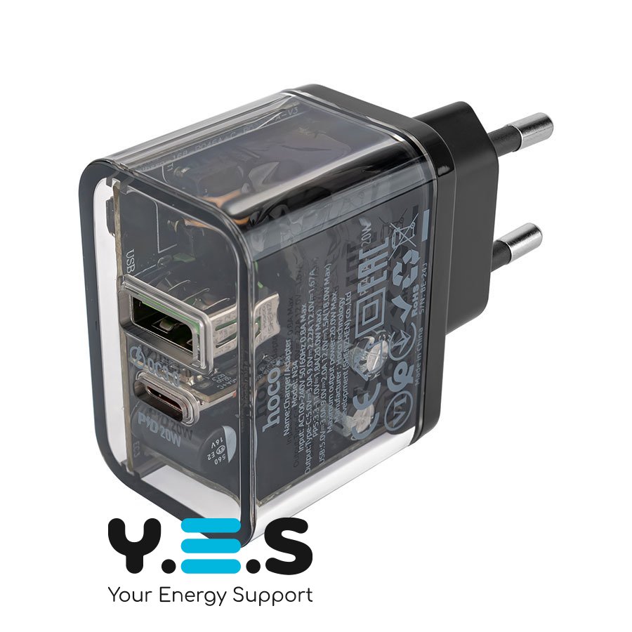 Переваги зарядного пристрою HOCO N34 Dazzling dual-port PD20W+QC3.0 чорний