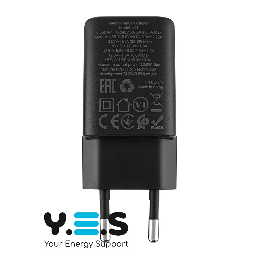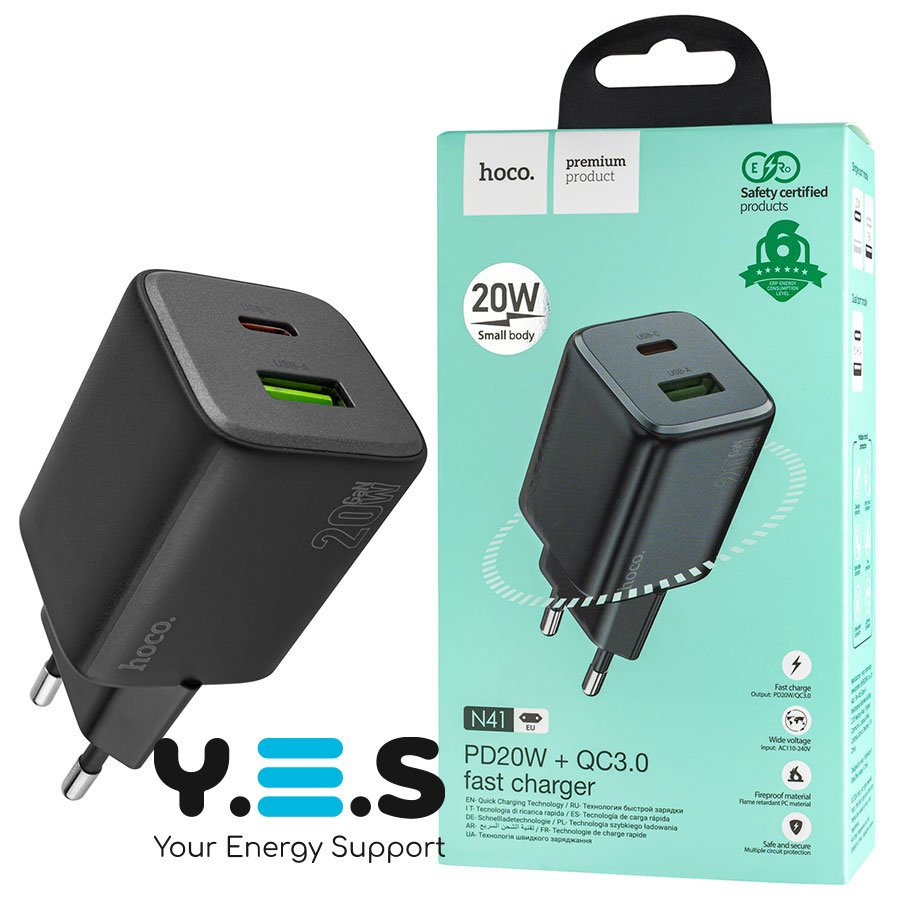 Зарядний пристрій HOCO N41 Almighty PD 20W + QC 3.0, чорний (6942007617024)