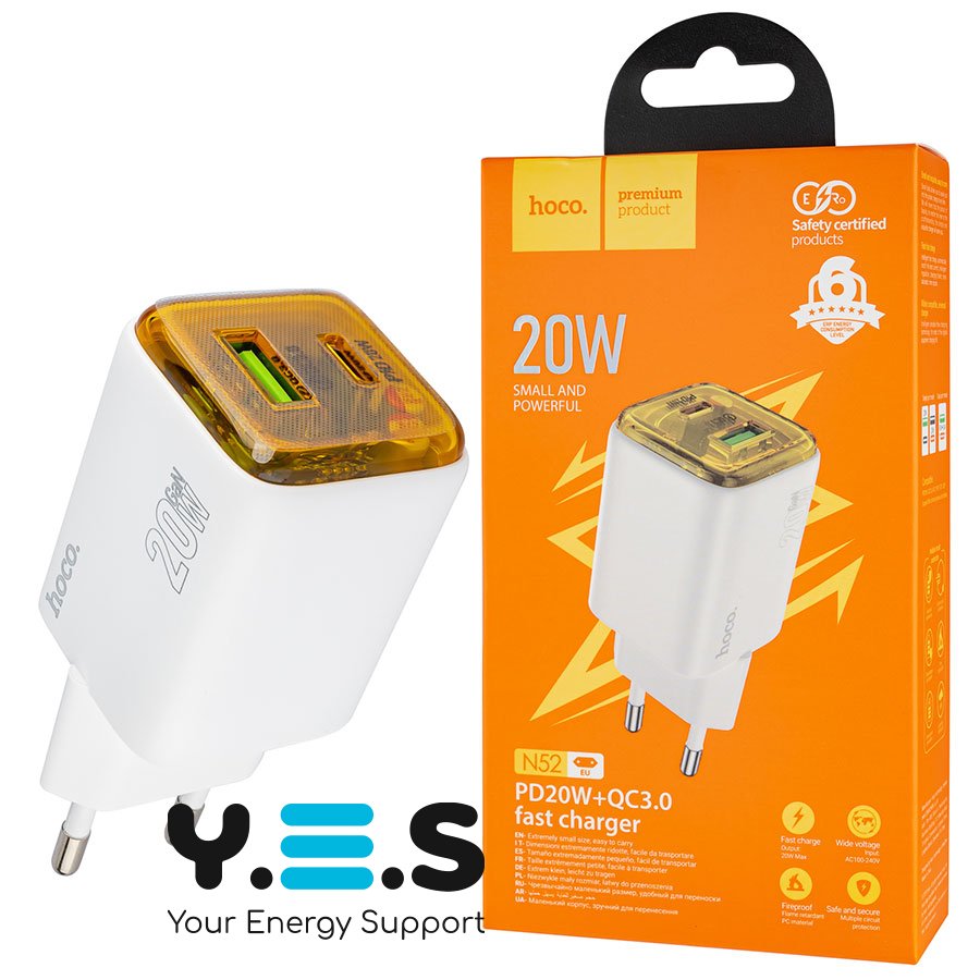 Зарядний пристрій HOCO N52 Monsoon PD 20W + QC 3.0, білий (6942007630375)