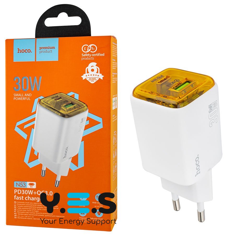 Зарядний пристрій HOCO N53 Monsoon PD30W+QC3.0 білий 6942007630436